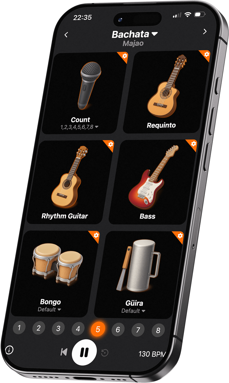 BeatLab currently offers specialized apps for bachata, salsa, merengue, and reggaeton. Each includes authentic instruments from the genre, multiple tracks, and varied styles.